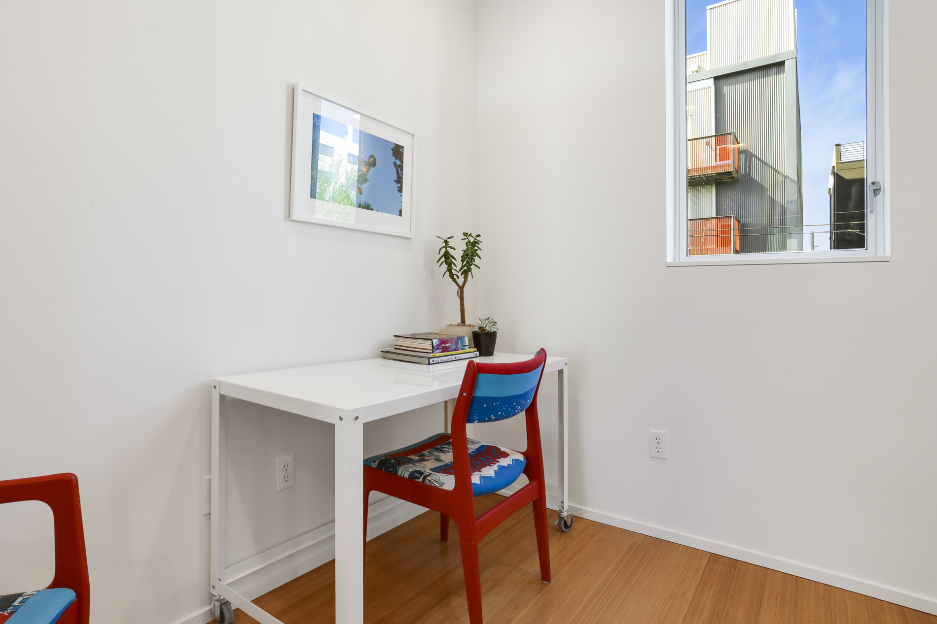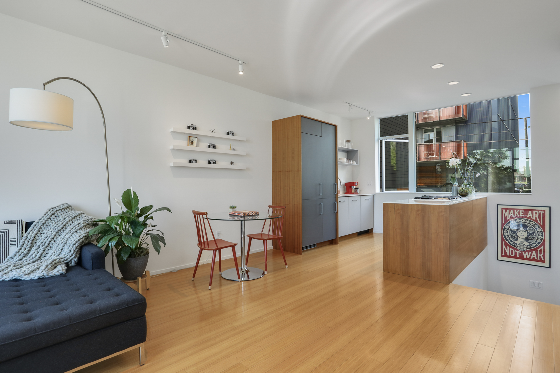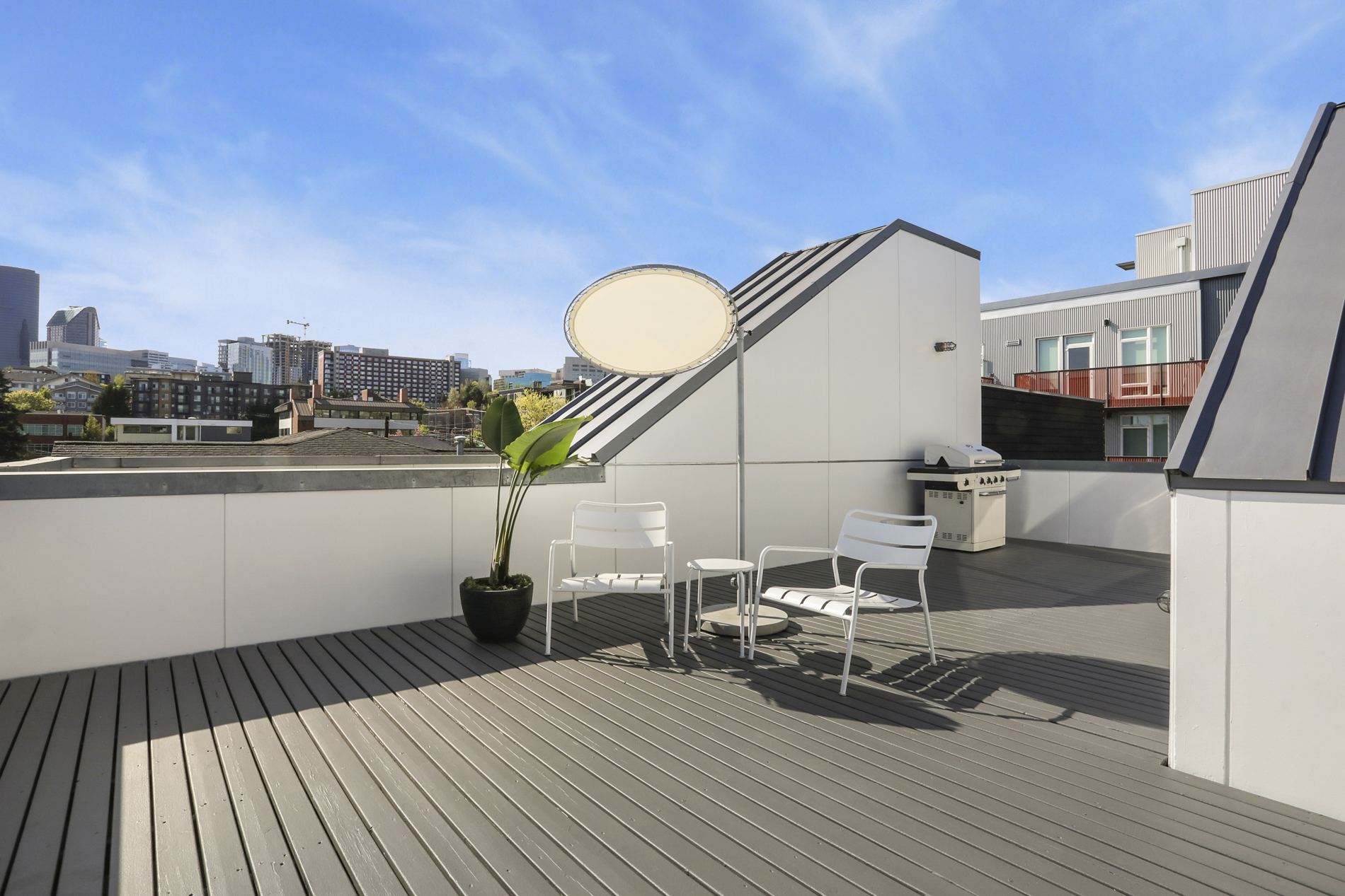 Bask in natural light. Designed by acclaimed Hybrid Architecture, this exquisitely detailed modern beauty with floor-to-ceiling commercial glass and full southern exposure is a designer's delight. Delicate floating stairs combine with a refined aesthetic to create an open, airy, and sophisticated environment. Luxurious in-floor radiant heat, Henrybuilt cabinets, and Bosch appliances elevate the experience. Ingenious touches like pass-through lighting in the bath, removable wall panels, and a full separate suite with a private entrance spark joy daily. Topping it all off is an expansive 400+ SF roof deck with mountain and city views. With a walk score of 95, amazing restaurants steps away, a transit score of 90, and an off-street parking spot, you'll love calling this home.